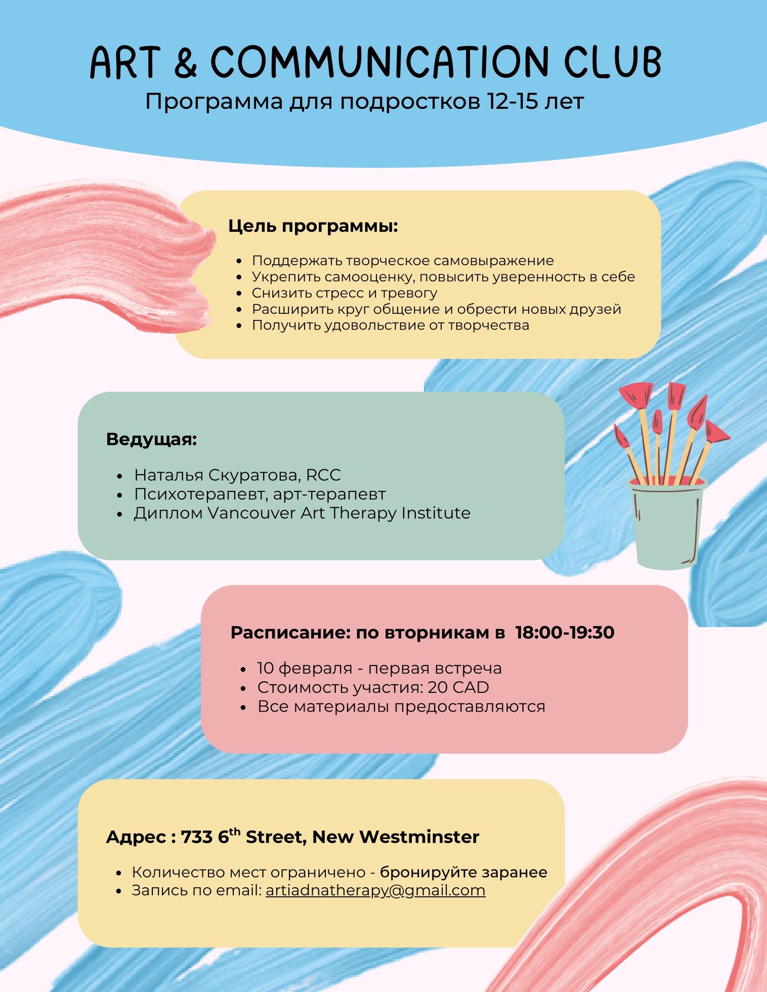 Приглашаем подростков 12-15 лет принять участие в программе Art & Communication Club!